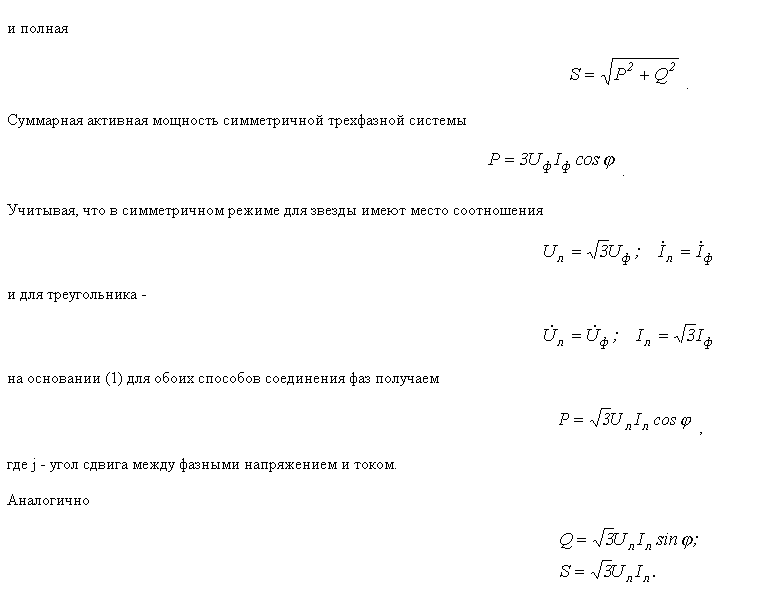 Има два основни начина за изчисляване на трифазна мощност. Първият е, когато се събират мощностите на трите фази и се използва фазовото напрежение или S=(Uф1*Iф1)+(Uф2*Iф2)+(Uф3*Iф3) или при симетрична схема S=3(Uф*Iф).