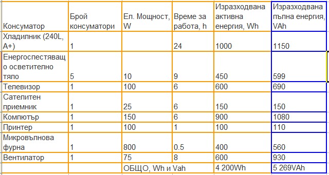 venkap написа:Удивен съм от огромното разминаване в пресметнатите мощности за акумулатори в автономните и хибридните фотоволтаични централи обявени в сайтовете. Ако за вторите имам до някъде обяснение, то за чисто соларните нямам. Още повече, когато има едно и също заявено количество дневна консумирана мощност, при еднаква инсталирана мощност на панелите и при обещаната нормална работа на централата при минимум 3 дена не слънчеви дни.